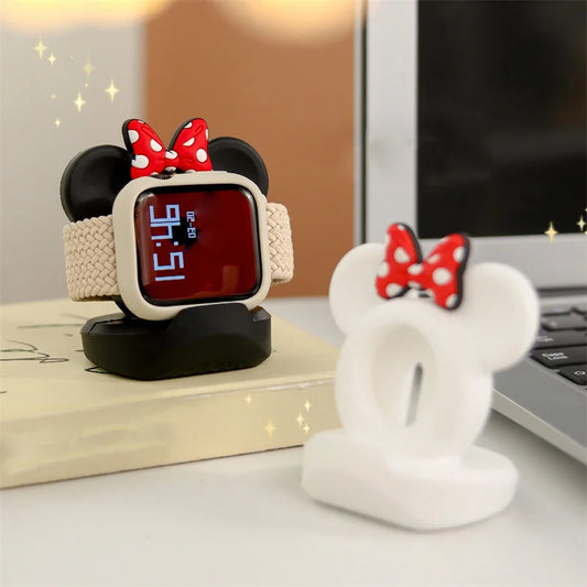 Cute Cartoon Bow Tie Bear Silicone Charger Stand For Apple Watch Serie 8 SE 7 6 5 For Iwatch Charging Desktop Holder Accessories