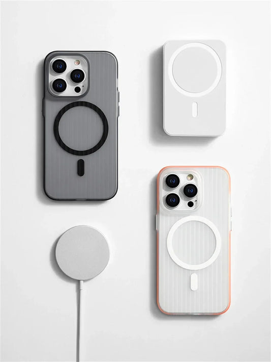Corrugated Pattern For Magsafe Magnetic Wireless Charge Case For iPhone 15 14 13 Pro Max Non-slip Bumper Hard PC Matte Cover